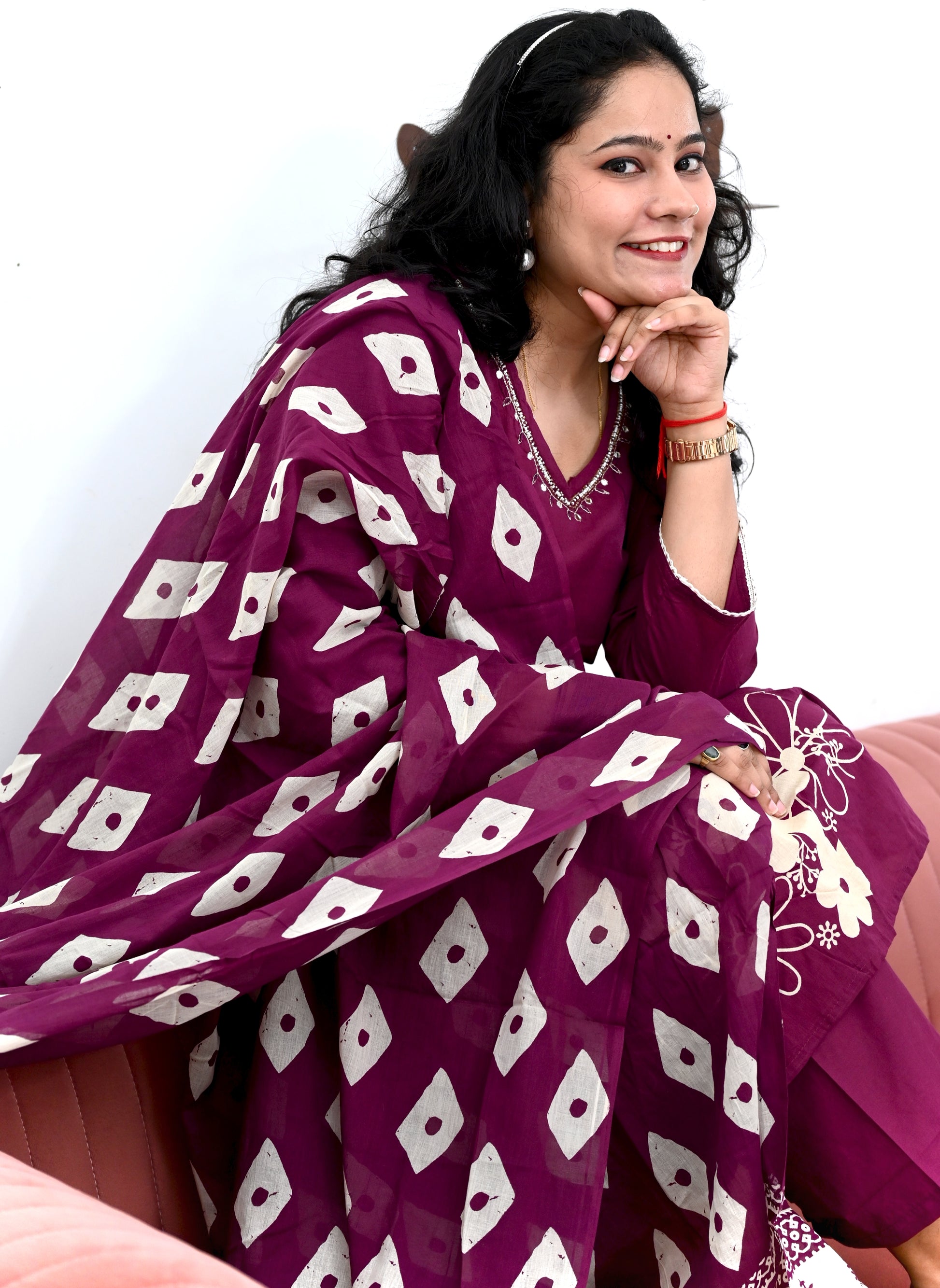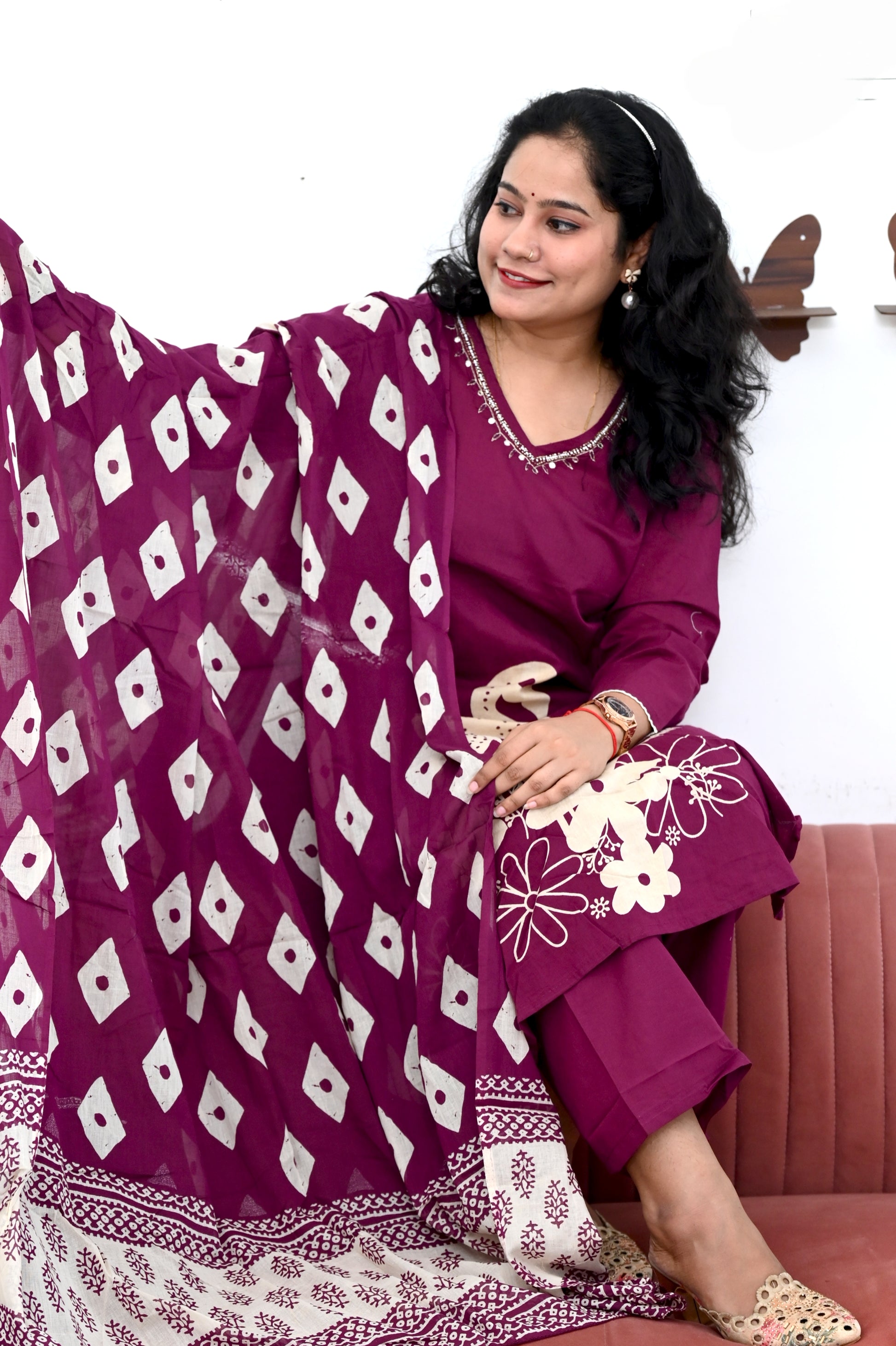 | Color | Deep Plum or Wine (Kurta & Pants). |