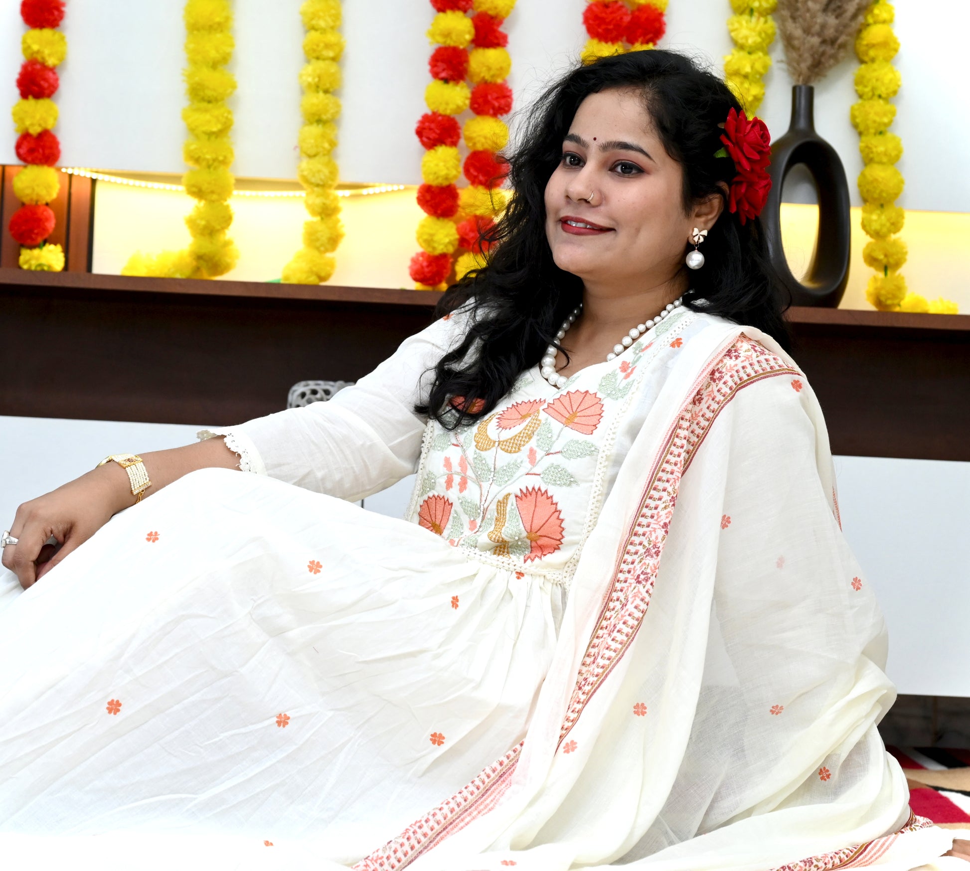 | Details | Delicate Crochet Lace trim on the hemline of the kurta and sleeves. The high empire waist and gathers create a beautiful, full flare. |