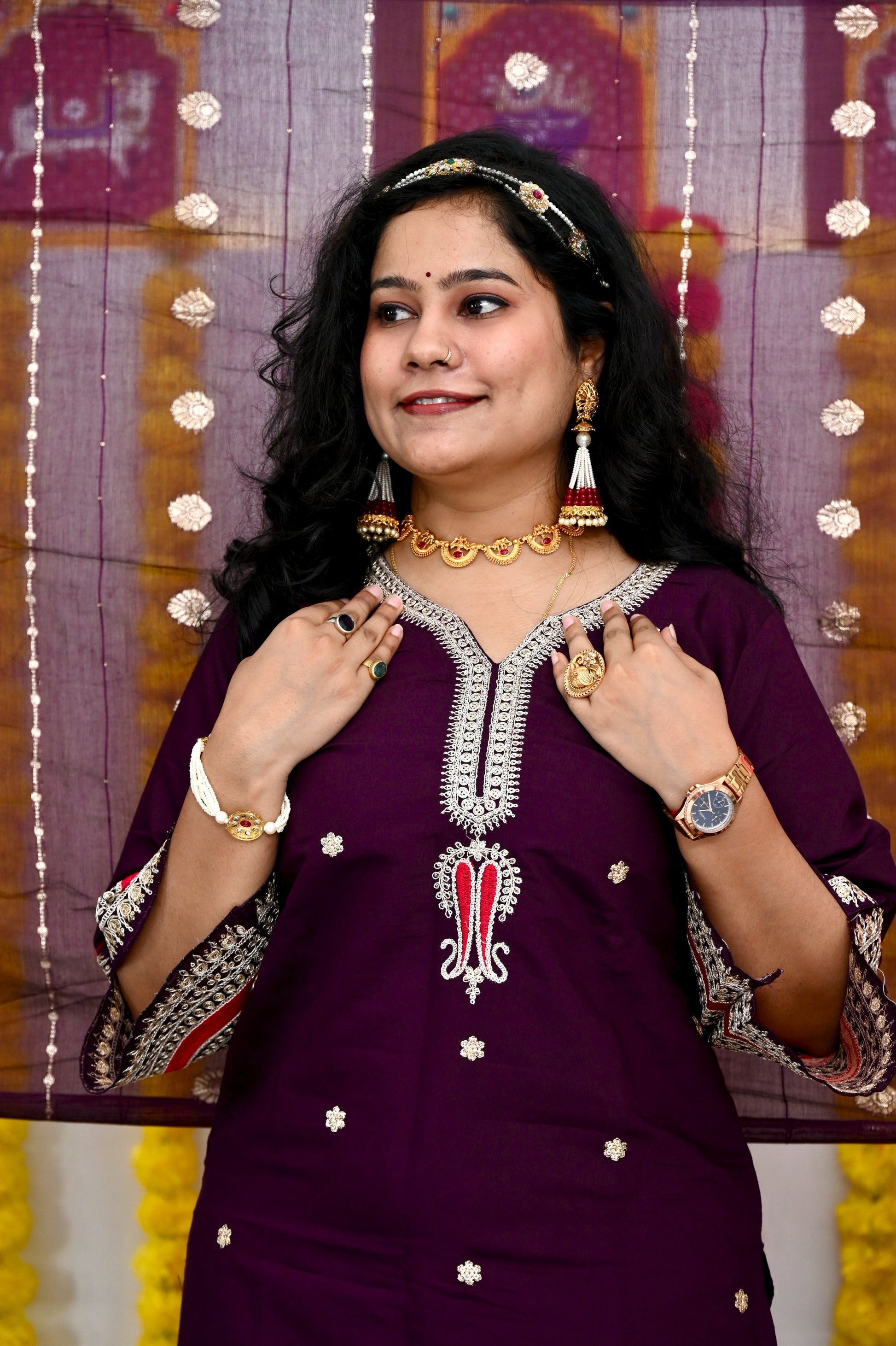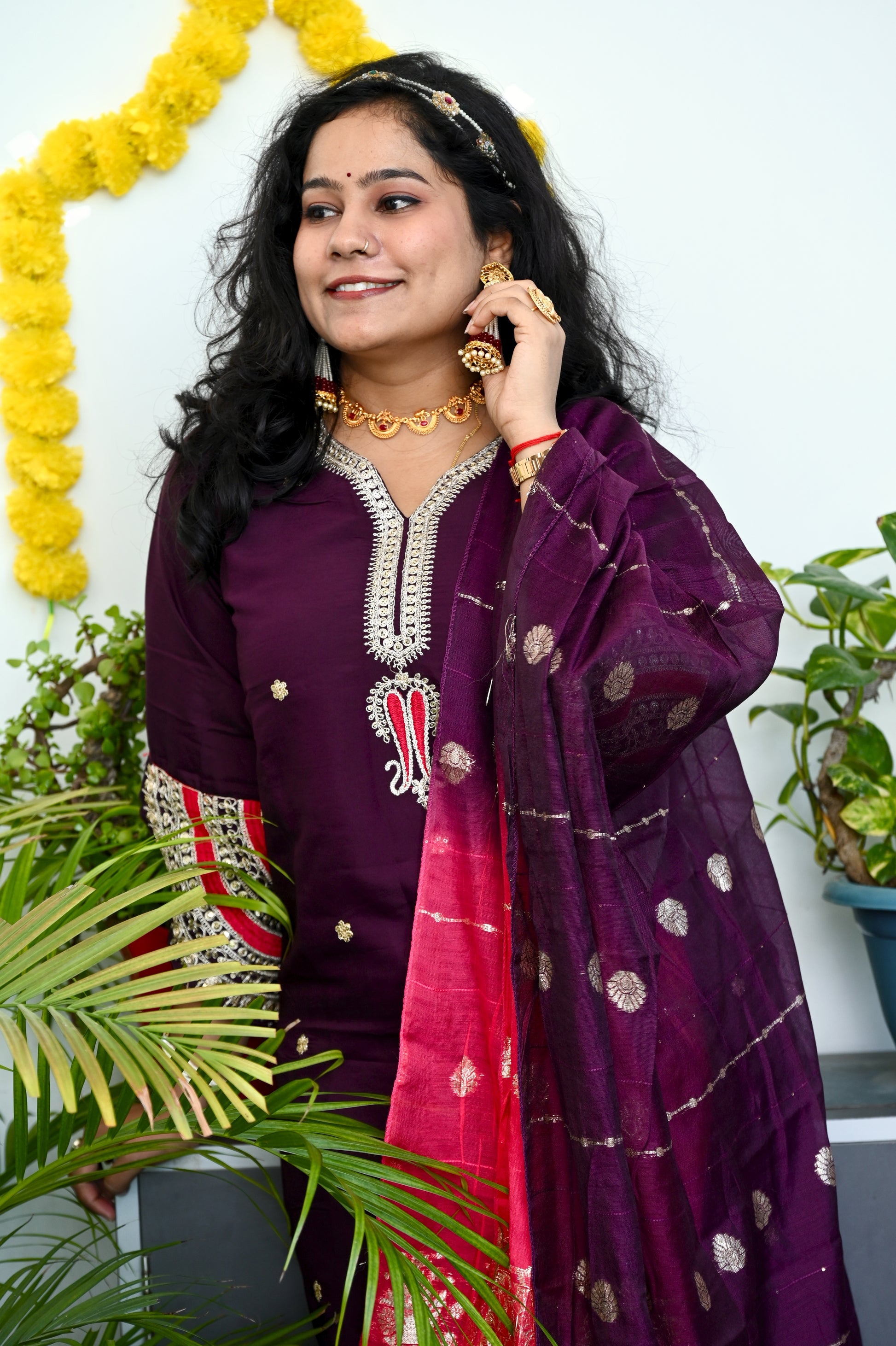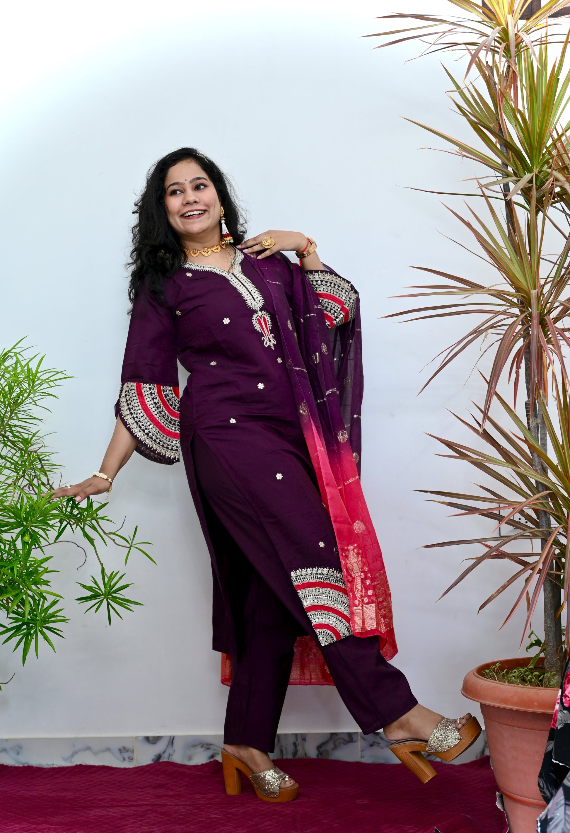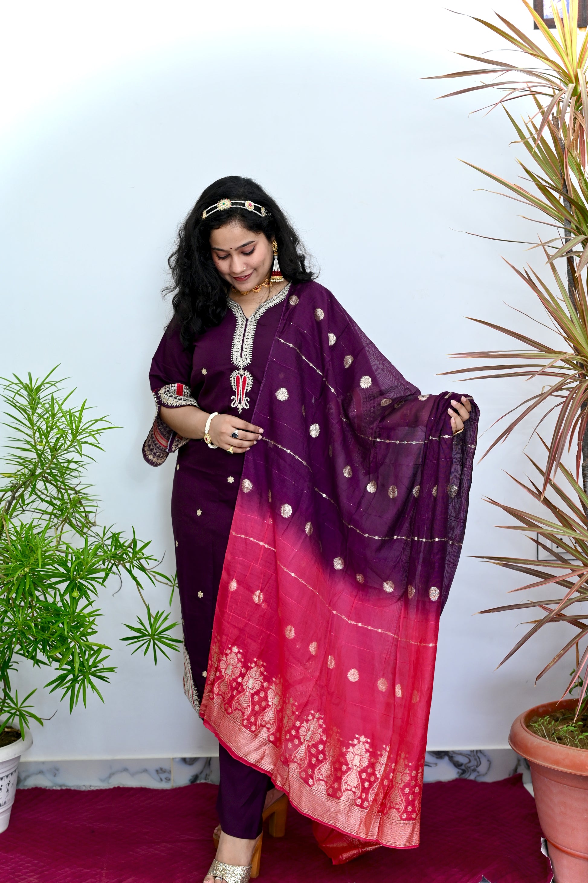 | Color | Deep Plum/Aubergine/Wine (Kurta & Pants). |